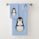 Cute Penguin Holding a Heart on Light Blue Towel Set. Ideal for everyone.