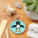 This fun Christmas keychain features a cute penguin character with a white tummy, big blue eyes with black pupils and cute orange feet and beak. This charming little winter bird is sure to delight children and adults. The penguin sits on an icy pale blue background to remind him of his chilly Artic home.