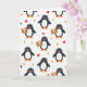 This Valentine’s Day greeting card features a repeating pattern of adorable penguins set against a warm off-white background. Small red hearts and tiny golden stars are scattered between them, adding a gentle touch of romance ❤️. The penguins have dark charcoal-blue bodies, white bellies, soft pink cheeks, and bright orange beaks and webbed feet. Many face different directions with calm, happy expressions, giving the pattern a lively feel. Some penguins hold small kraft-colored envelopes sealed with tiny white hearts, as if they’re delivering secret love notes 💌. There is no text on the front, letting the pattern speak for itself. It’s a cozy, affectionate card that works well for Valentine’s Day, friendship, or a sweet note to someone you care about 🍫.