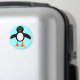 This fun Christmas magnet features a cute penguin character with a white tummy, big blue eyes with black pupils and cute orange feet and beak. This charming little winter bird is sure to delight children and adults. The penguin sits on an icy pale blue background to remind him of his chilly Artic home.