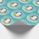 Cute Penguin on Blue Winter Cartoon Pattern Wrapping Paper