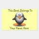 Cute Penguin on Yellow Book Name Plate Rectangular Sticker