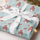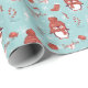 Cute penguin wrapping paper personalized with a name or any custom text. Great gift wrap for Christmas or the Holidays, featuring cute animals and winter illustrations in blood orange or soft red color and aqua green.