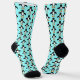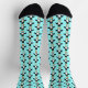 This awesome pair of patterned crew socks features a cute penguin character with a white tummy, big blue eyes with black pupils and cute orange feet and beak. This charming little winter bird is sure to delight children and adults. The penguin sits on an icy pale blue background to remind him of his chilly Arctic home.