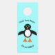 This awesome door hanger features a cute penguin character with a white tummy, big blue eyes with black pupils and cute orange feet and beak. This charming little winter bird is sure to delight children and adults. The penguin sits on an icy pale blue background to remind him of his chilly Arctic home.