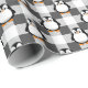 Cute Penguin Plaid Pattern In Black White and Gray Wrapping Paper