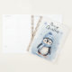 A charming winter illustration of an adorable little penguin wearing a blue striped hat and scarf, bringing a cozy and festive vibe. The soft snowflakes and gentle blue tones in the background create a magical winter atmosphere. Perfect for Christmas cards, posters, stickers, and seasonal crafts!