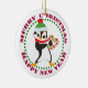 Cute Penguin with Candy Cane Heart Ceramic Ornament