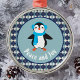 Cute Penguin with Earmuffs Peace and Joy Metal Ornament
