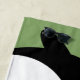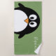 Cute Penguin with Whimsical green handwritten name Beach Towel