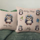 Cute Penguins with Flowers Name & Monogram Beige Throw Pillow
