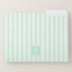 Cute Peppermint Green Stripes Monogrammed Initials File Folder