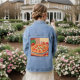 This is a cute AI Art Pepperoni Pizza Denim Jacket. The artificial intelligence design features a cute pepperoni pizza on a plate on the back of the jacket. The art also has pepperoni and tomatoes on a table in it. This custom women's denim jacket is your personal fashion statement! Personalize it with your favorite image or design and flaunt your unique style everywhere you go. Showcase your individuality, with this cotton-blend jean jacket. The denim jacket is made with 90% cotton, 6% polyester, 3% rayon and 1% spandex.