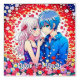 Anime boy and girl cuddling surrounded by colorful flowers. Cute anime couple, girl with pink hair and boy with blue hair. Personalize by adding your names in the personalize area.
