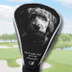 This personalized golf head cover features a striking black-and-white photo of a Labradoodle, paired with the playful caption “Best Dog Dad By Par” and space for a custom name. Both text lines are fully editable. Ideal for Labradoodle owners and fans of other doodle breeds like Goldendoodles or Cockapoos, this fun and thoughtful design makes a great gift for dog dads who love golf.