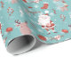 Cute Santa Claus and reindeer wrapping paper personalized with a name or any custom text. Great gift wrap for Christmas or the Holidays, featuring cute animals and winter illustrations in blood orange or soft red color and aqua green.