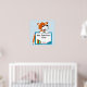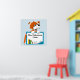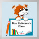 Customize this personalized classroom poster of a cartoon dog holding white banner with teacher's name and pencil and books in foreground. Will brighten up any elementary school class. Background color can be changed too.