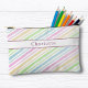 A cute personalized pencil pouch featuring your name and colorful watercolor pastel stripes. The perfect zipper case for storing your art supplies for back to school or any time of year.
