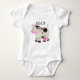 Cute and personalized infant bodysuit with an adorable, whimsical black and white cow. This will make the perfect baby shower gift for the new baby.