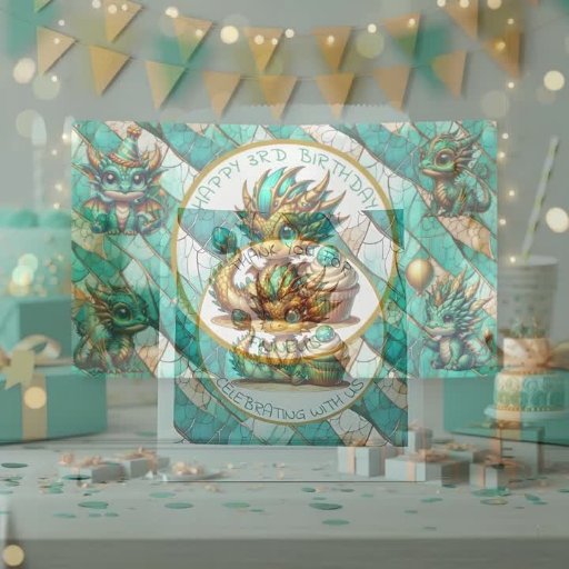 Three sheets of different dragon patterns in teal and gold for a boy's birthday party. One sheet you can personalize with your child's name.