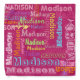 Cute Colorful Custom Personalized Your First Name Pattern on Pink Bandana. Features pink blue, green, hot pink, purple, yellow, orange color font pattern on hot pink color background. Great, fun, feminine, girly design.