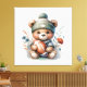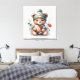 Personalized canvas print has a football theme with a feminine touch. Great wall art for football fans. Modern design has flowers with a cute bear holding a football. Customize with your desired text, name, or phrase. Use the template to create your own personalized canvas print.