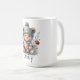 Personalized coffee mug has a football theme with a feminine touch. Modern design with flowers and a cute bear holding a football. Great for football fans. Add your name to the mug and create your own personalized coffee mug.