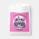 Adorable personalized Happy Birthday possum themed birthday party favor bag. A cute possum in a pink and purple birthday hat, with gifts and balloons celebrating a birthday.