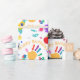 This cute and colorful wrapping paper design features a collection of colors, with a colorful hand print, ABC, 123 with Happy Birthday & name plus background. This wrapping can be personalized with any child's name. This awesome finger paint ABC, 123 themed party supplies is an excellent addition to any birthday party for kid's of all ages.