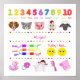 Add a special custom touch to the bedroom or nursery of your little girl with this adorable learning poster. Poster has numbers 1 to 10, five animals, several colors, a happy face and a sad face, and icons representing objects. Add a first name for a personalized touch.