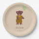 Cute Personalized Name Bear Beige Children's Paper Plates