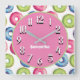 Cute Personalized Pink Blue Green Doughnuts Square Wall Clock