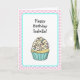 Pink and teal hand drawn vanilla cupcake Birthday card for her.