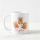 Cute Capybara Coffee Mug with whimsical watercolor capybaras. DARK PINK script typography. CUSTOMIZABLE NAME on front/back and CUSTOMIZABLE MONOGRAM in the middle. Ideal for capybara lovers and Baby Shower Mom gifts. This would make a great new mom gift. Matching party supplies, stationery and apparel available.