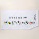 A cute modern yoga inspired beach towel with the words "I Bend So I Don't Break" and 9 different whimsical characters in various yoga poses. Personalize this cool yoga beach towel with your own name or give it to a someone who really loves Yoga as a gift. This beach towel is great for any workout, or relaxing on the beach by the ocean and it's a real conversation piece.