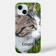 Cute pet cat photo Barely There iPhone 15 case. Personalized cover with animal design. Add your own name or monogram initials.