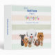 Keep your pets records organized in this binder featuring a pack of cute cartoon dogs on a sage green, blush, and white striped background with a little floral embellishment. Custom text on the front and spine help you easily identify the binder. Great for multi dog households.