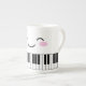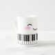 Cute piano keys mug with smiling face. Cute gift idea for kids. Fun Birthday gift idea for children. Smiling face with rosy cheeks. Kawaii style cup with black and white keyboard.