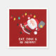 Cute jolly Christmas holiday party napkin with a Pickleball twist - swinging graphic Santa holding a ball and paddle, ready for a challenge. Happy Holidays!