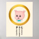 Cute pig cartoon on light beige background Poster. A pig is a symbol of abundance, prosperity and well being. It makes a great gift for everyone!