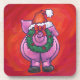 Cute Pig in Santa Hat on Red Beverage Coaster