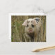 This cute postcard features a beautiful photograph of a cute pink spotty pig emerging from some tall grass.