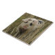 This awesome tile features a beautiful photograph of a cute pink spotty pig emerging from some tall grass.