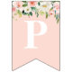This Custom birthday bunting coordinates with the other designs in the Olivia Pigsley Collection. The design features a cute pig with a rose on her ear, with flowers at the top on a blush pink background. The banner spells out Happy Birthday.