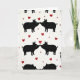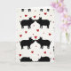 This card shows a repeating pattern of black pig shapes set on a white background. The pigs are arranged in neat vertical rows, and each pair is turned toward each other in a close hug. Their snouts curve in and almost touch, so it looks like a kiss or gentle nuzzle. Small white marks on their faces suggest simple eyes, giving them a calm, sweet look. Bright red hearts are scattered between the pairs, with a few different sizes to keep the pattern interesting 💘❤️. There isn’t any text printed on the card, so the design does all the talking. Overall, it feels warm and affectionate, like a little reminder of closeness and care 😘.