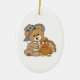 cute pilgrim teddy bear with turkey ceramic ornament