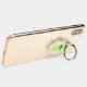 The piece to peel off is on the entire back of the grip when received, though it's not super easy to tell, just lift carefully with a fingernail end and peel off. The grip sticks well to the phone, is very stable and immobile once adhered. Know exactly where you want it before pressing it on. The printing was fine, colours were quite true to what I saw on my personal screen. Fine small lines turned out well. The artist's Mandala design is gorgeous.