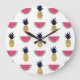 Cute Pineapple & Watermelon Doodle Pattern Large Clock