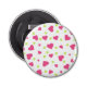 Bottle opener with a cute pattern composed of pink and green tumbling hearts on a white background.