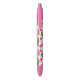 Very nice blue, or black ink pen. I will be buying more. The print was fine. I can easily see the print. The flowers look great.